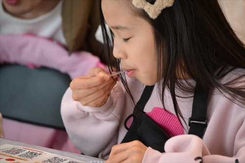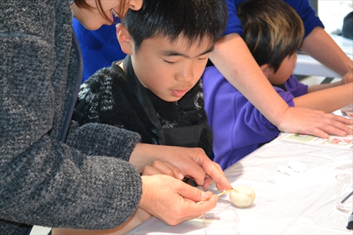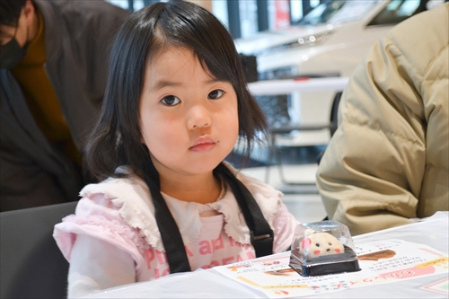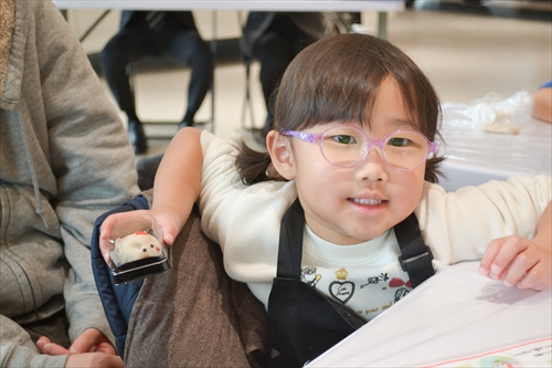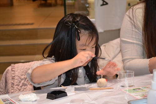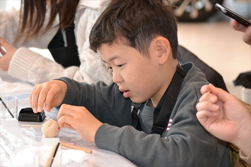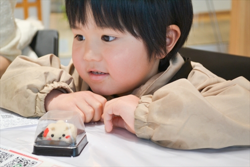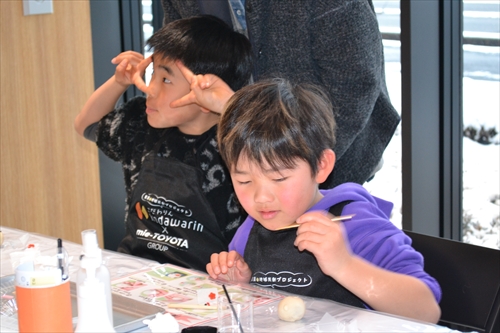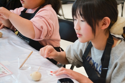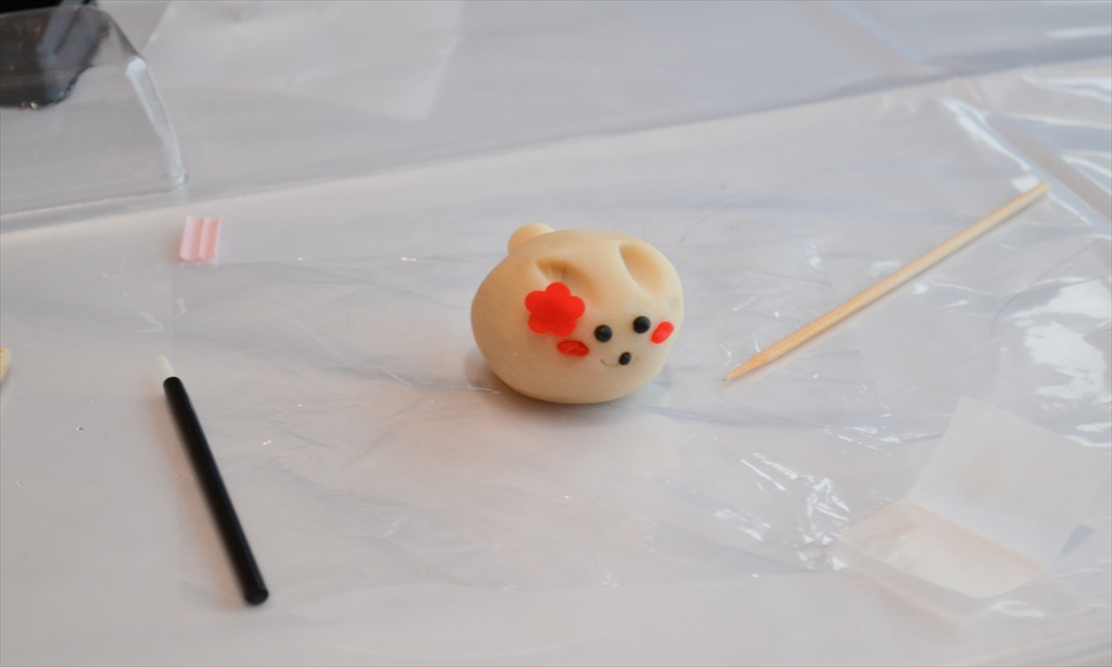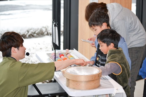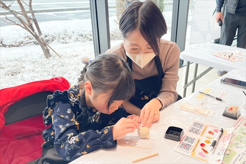 子どもたちの小さな手によって、やわらかな生地は少しずつ形が整えられ、やがて愛らしい「雪うさぎ」へと仕上がっていく。世界にひとつの和菓子作品が完成すると、子どもたちは、ちょっと誇らしげ!? 大切そうに手のひらにのせ、満面の笑みを浮かべた。