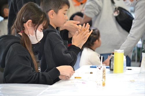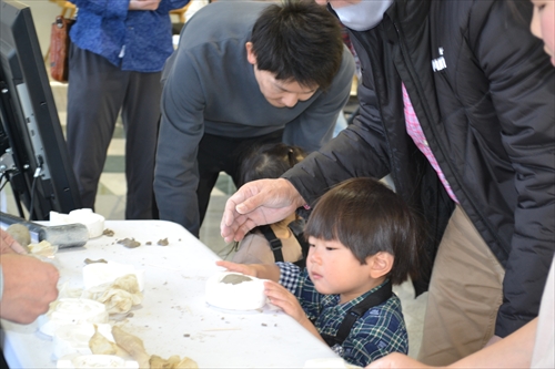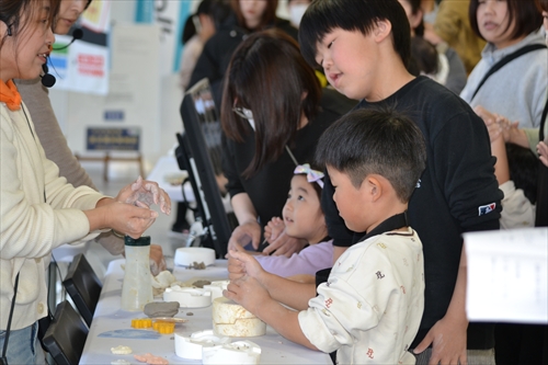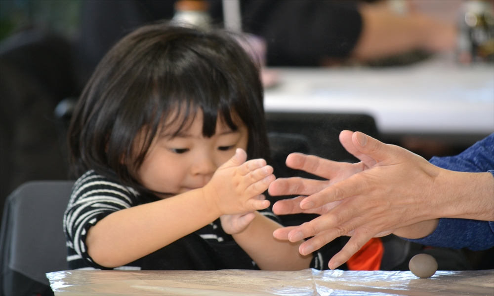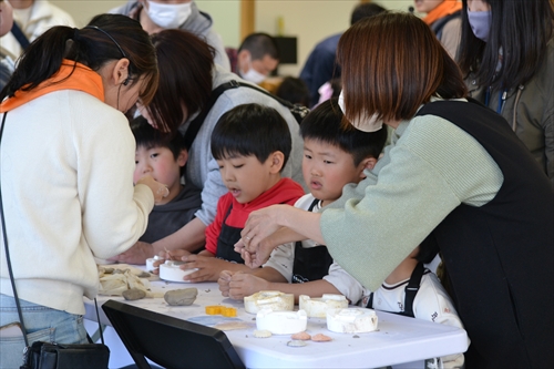 当日は3部制で実施され、合わせて54人が参加。山から採れた土の塊を砕いて、ねって、それを型に入れて形づくっていく。子どもたちは土の質感や手触りを確かめながら思い思いの作品づくりに挑戦し、ものづくりの楽しさを体験した。
