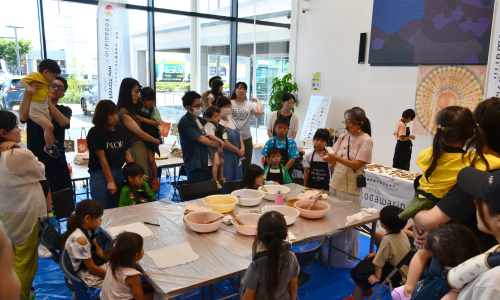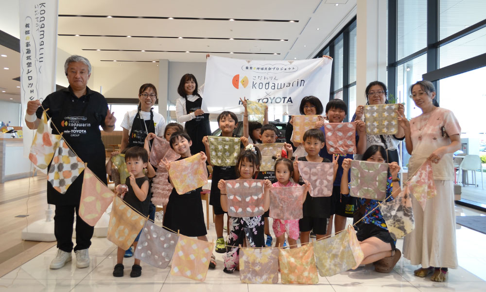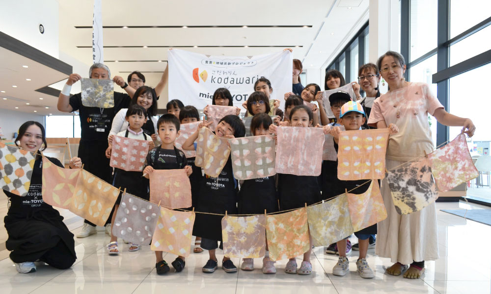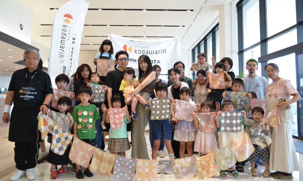 8月3日、三重トヨタ鈴鹿店で「べんがら染め体験」が開催された。本イベントは、「食の背景にあるストーリーを届けたい」という思いから生まれた「Kodawarin(こだわりん)」とのコラボイベント第8弾。参加者は、土から採れる酸化鉄(ベンガラ)を原料とした天然染料を使い、布を染める「べんがら染め」の技法を体験した。