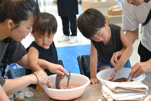- 2才の娘との初めての体験でとても楽しかったです!小さな手でまるめて色をつけたハンカチがとても愛おしかったです。ありがとうございました!
